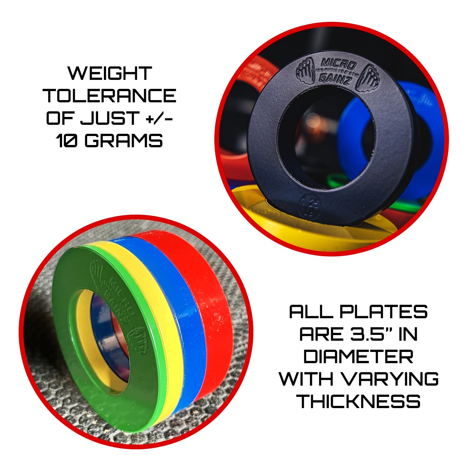 Micro Gainz Multi-Color Olympic Size Fractional Weight Plates Set of 10 Plates .25LB-1.25LB w/ Bag